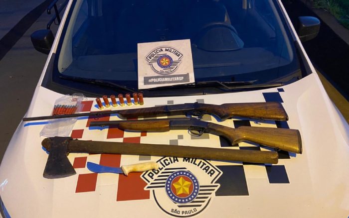A Polícia Militar foi acionada e conseguiu deter os criminosos. Além dos suspeitos, os agentes também localizaram duas armas de fogo e outros instrumentos para fazer o descarne dos animais.