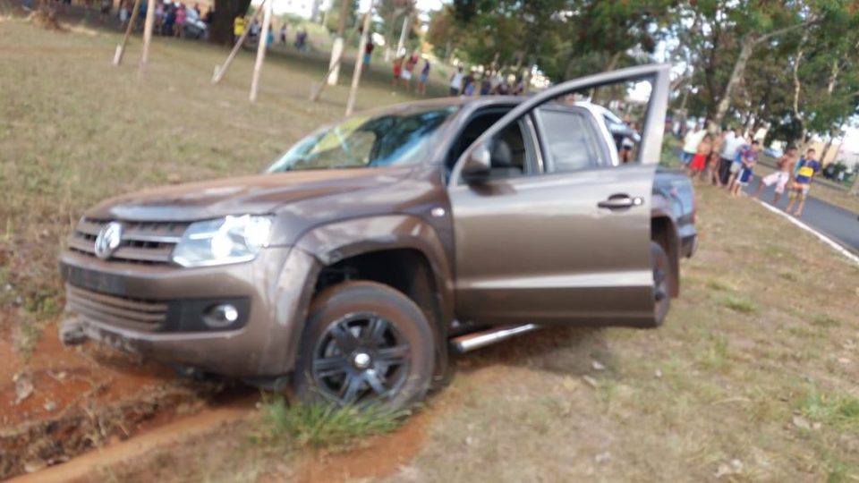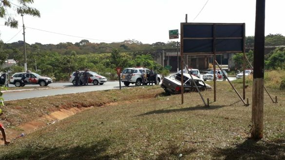 Quando perceberam a presença dos policiais no local, os ladrões tentaram fuga e o condutor perdeu o controle da direção e a caminhonete capotou.
