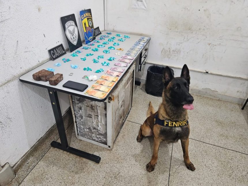 Uma viatura do Canil da GCM foi acionada e, com a ajuda do cão de faro Fenrir, fizeram uma varredura num terreno baldio próximo ao local onde a dupla foi surpreendida. Durante as buscas, encontraram mais 298 cápsulas com cocaína e 23 porções de haxixe além de pedaços grandes de cocaína e maconha.