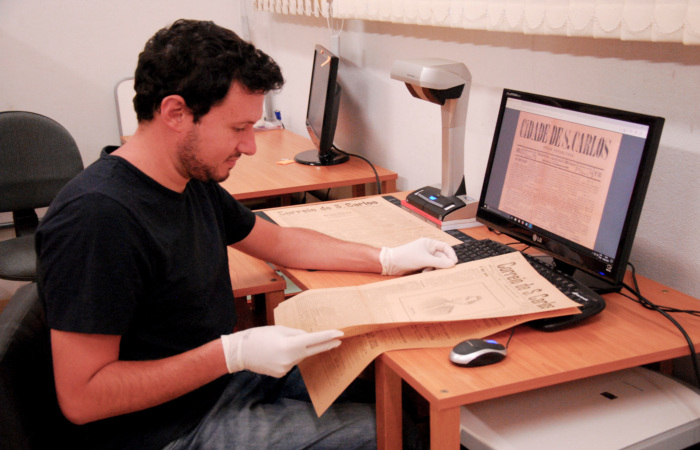 A Unidade Especial de Informação e Memória (UEIM) da Universidade Federal de São Carlos (UFSCar) está digitalizando um acervo de jornais raros de São Carlos e região, publicados no século XIX, para facilitar o acesso de pesquisadores e outras pessoas interessadas a esse material, que já é muito consultado. “São várias as pesquisas realizadas, por exemplo sobre a utilização das propagandas e das fotografias na época, além de temas específicos, como, por exemplo, a escravidão. Para facilitar esse acesso e, também, preservar o material, a digitalização sempre foi um sonho”, conta Ricardo Biscalchin, bibliotecário da UEIM que está responsável pelo processo, realizado também pelo estagiário Bruno Rafael Caldeira, estudante do curso de Biblioteconomia e Ciência da Informação da UFSCar.