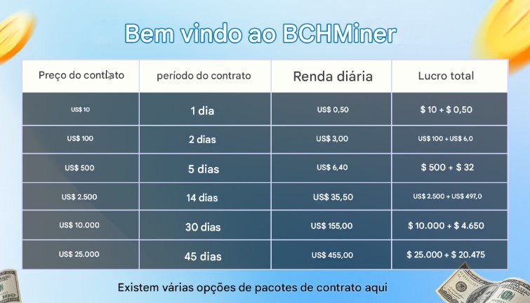 · A plataforma BCH Miner oferece planos flexíveis para que você possa começar com um pequeno investimento.