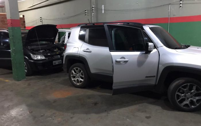 Agentes da Força Tática da Polícia Militar encontraram um Jeep Renegade, uma Chevrolet Zafira e um Volkswagen Polo, além de ferramentas para a desmontagem dos automóveis