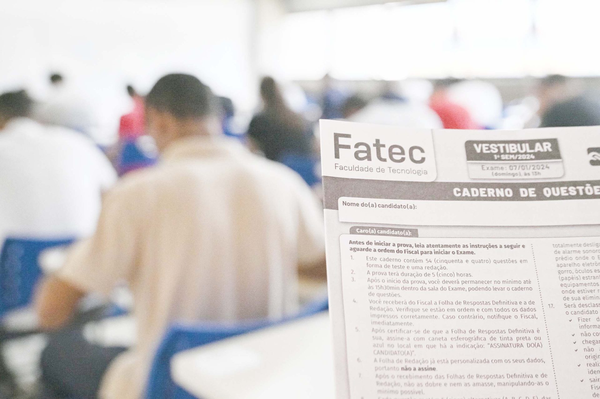 O processo seletivo das Faculdades de Tecnologia do Estado (Fatecs) está com inscrições abertas até esta quinta-feira, 19 de dezembro, exclusivamente pelo site vestibular.fatec.sp.gov.br. A taxa de inscrição é de R$ 60 e pode ser paga até as 16 horas do dia seguinte (20). A prova será aplicada em 12 de janeiro de 2025.