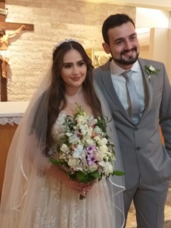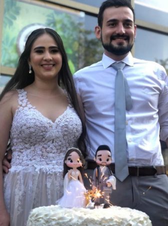 Na Igreja Santa Edwiges e Jesus Misericordioso, o agricultor José Carlos Barrilari, conduziu a neta nutróloga Camila, para receber a aliança do médico Igor Fernando Almeida Teodoro. Em seguida, bem na intimidade, brindaram com Ricadona e Camarão, no Coco Bambú.