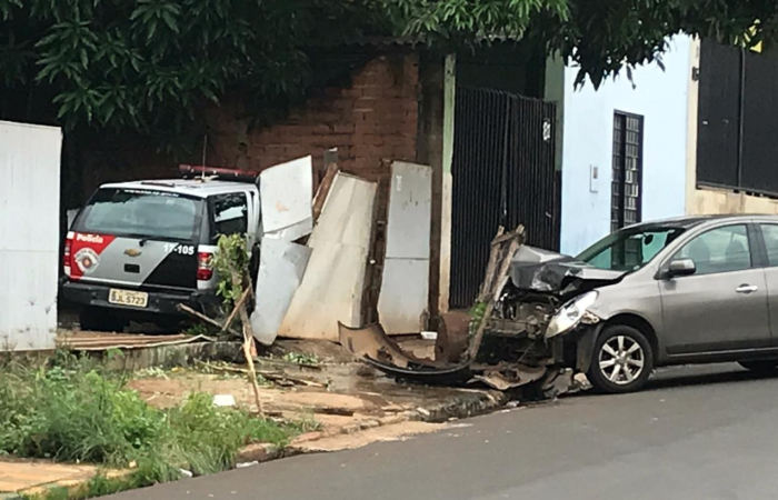 Uma viatura da Força Tática da Polícia Militar, acompanhando 2 suspeitos que estavam em fuga com motocicleta, na manhã da segunda-feira (3), quando o motorista perdeu o controle da direção ao passar por cima de um buraco , colidiu com um carro estacionado e invadiu uma casa, no cruzamento das ruas Luiz Barreto com Itu, na Vila Carvalho, na Zona Norte de Ribeirão Preto.