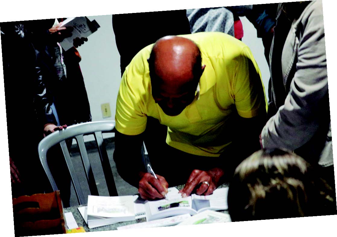 Mas, outro público, não menos interessado, ocupava as cadeiras do Auditório Meira Júnior, no subsolo do Pedro II. No mesmo horário da palestra de Cortella, a jornalista Daniela Penha lançava seu livro “História do dia – um olhar sobre o cotidiano pela trajetória de 50 pessoas”. Entre esses olhares atentos estava o do gari Amaro Silva, de 70 anos, um dos personagens reais da obra.
