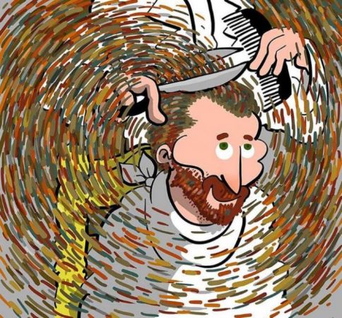 Com uma história envolta em mistérios, Van Gogh teve uma vida com passagens traumáticas, relações dramáticas, e momentos de transtornos psicológicos, sofrendo alucinações. Morreu jovem, aos 37 anos, mas a imensidão de sua obra segue perene, conquistando sempre público novo. Para Moghaddam, a atração pelo gênio incompreendido nasceu ainda na adolescência, quando deparou com essa arte cheia de cor, pinceladas fortes, carregada de significados, e diz que cresceu com ele. “Os livros de pintura de Van Gogh e as histórias em quadrinhos (Tintin e Branca de Neve) foram meus únicos amigos na adolescência. Quando criei minha página no Instagram, há cinco anos, pensava em publicar meus próprios cartoons ali. Mais tarde, Van Gogh acidentalmente entrou na minha atividade em praticamente tudo o que faço e estou muito feliz com isso”, confessa o artista iraniano.
