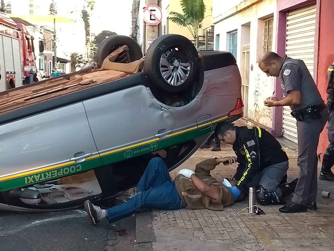 O taxista Fábio Bonardi dos Santos, 36 anos, ficou ferido quando o veículo que conduzia capotou manhã desta terça-feira (17), no cruzamento das ruas Florêncio de Abreu com São José, na região Central de Ribeirão Preto.