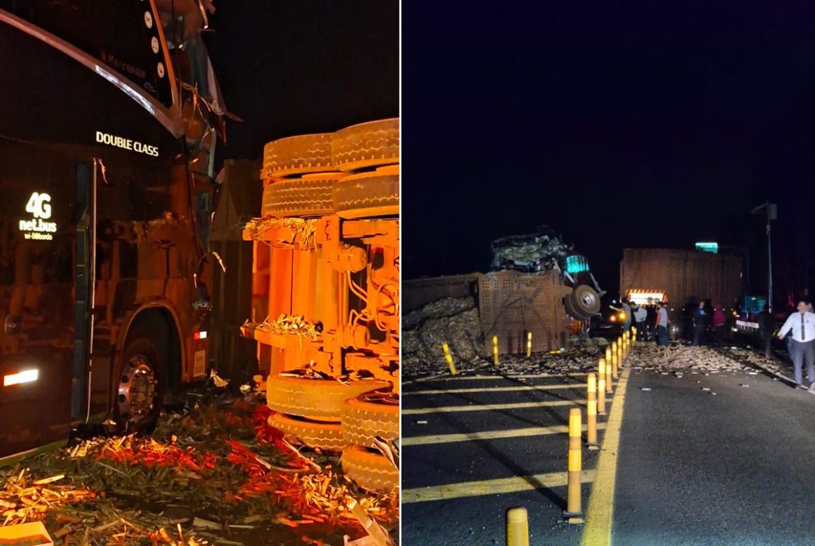 Um acidente envolvendo um ônibus e uma carreta bitrem deixou um morto e 14 feridos, na madrugada desta terça-feira (2). A colisão ocorreu na Rodovia Cândido Portinari (SP-334), no trevo de acesso a Batatais, região metropolitana de Ribeirão Preto.