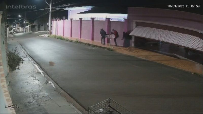 Três homens roubaram uma casa, na madrugada desta terça-feira (17). As vítimas não souberam afirmar se estavam armados. O crime ocorreu na Rua Bernardino de Campos, em Cravinhos, região metropolitana. Uma câmera de segurança registrou os criminosos fugindo.
