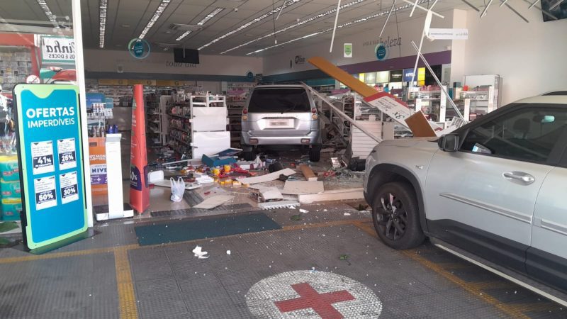 Desgovernado, o carro entrou dentro da farmácia e atingiu duas funcionárias, com estilhaços de vidros. Uma senhora que estava comprando medicamentos na farmácia passou mal e também precisou ser atendida.