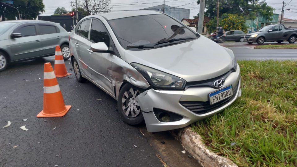 Um acidente de trânsito foi registrado na manhã desta quinta-feira (29) na zona Norte de Ribeirão Preto. Dois veículos colidiram no cruzamento entre a via Francisco Maggioni e a rua Municipal, provocando a subida de um dos carros no canteiro central.