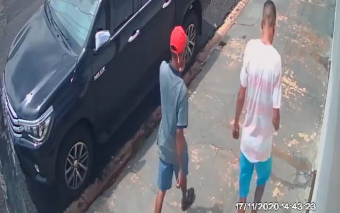 Imagens de uma câmera de segurança registraram a ação dos criminosos. Na oportunidade, a dupla passa algumas vezes em frente a um automóvel em que a vítima retirava alguns objetivos, na Rua Coronel Camisão.