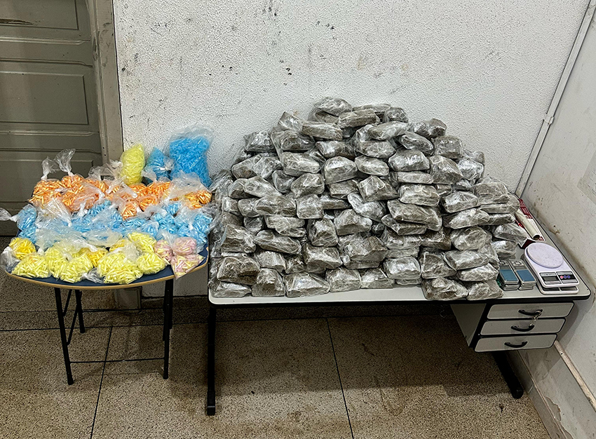 De acordo com a Polícia Militar, foram localizados cerca de 91 quilos de maconha e três quilos de cocaína. A droga estava fracionada em milhares de porções. Além disso, havia oito balanças de precisão e outros equipamentos.