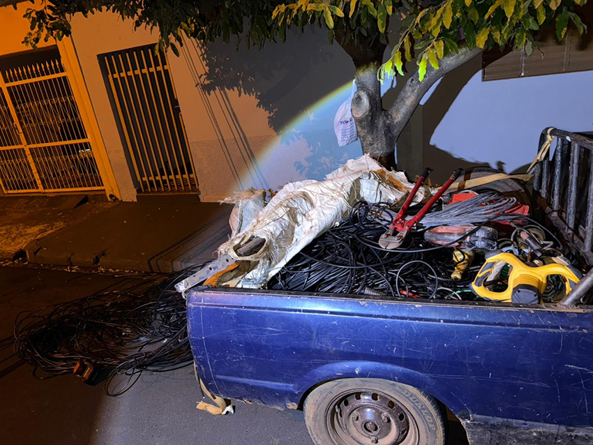 A Polícia Militar prendeu, no final da madrugada desta quinta-feira (24), um homem por furto. Ele estava com seu carro carregado de fios e ferramentas utilizadas na construção civil.