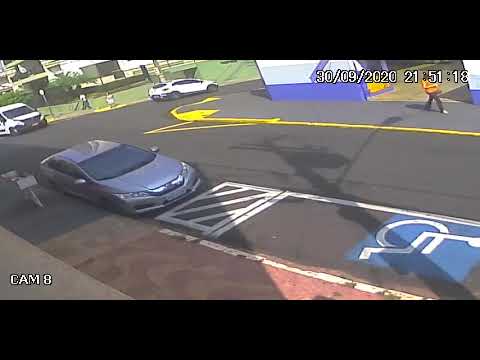 Imagens de câmera de segurança mostram o momento do atropelamento. Na ocasião, o condutor do veículo desce e presta auxílio a vítima.