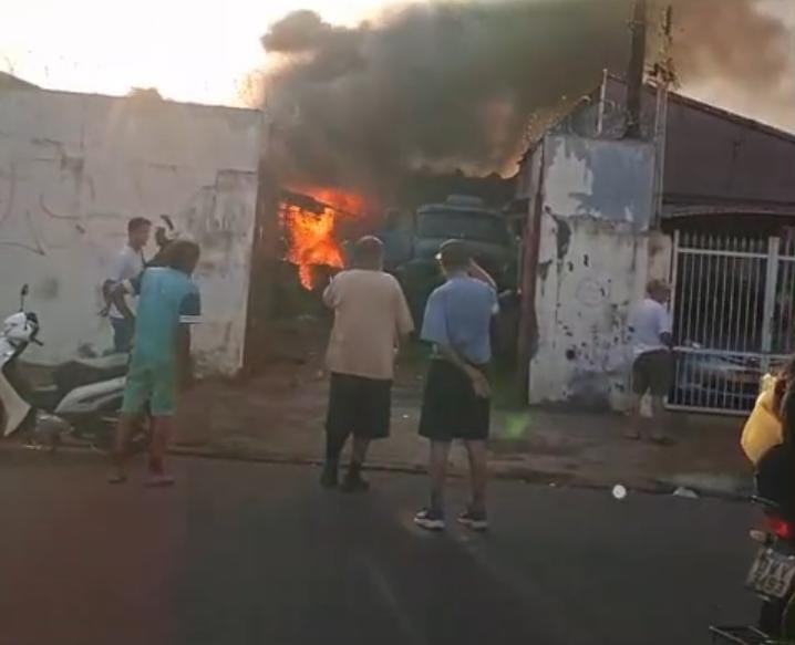 Um incêndio atingiu uma oficina mecânica na tarde desta quarta-feira (2), na rua Bahia, no bairro Ipiranga, zona Norte de Ribeirão Preto. Segundo informações preliminares, o fogo começou no amortecedor de um carro que estava sendo consertado.