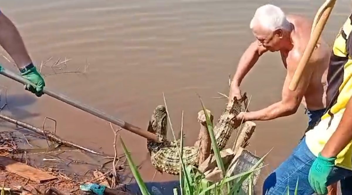 VÍDEO – Jacaré fisgado por pescador volta para seu habitat