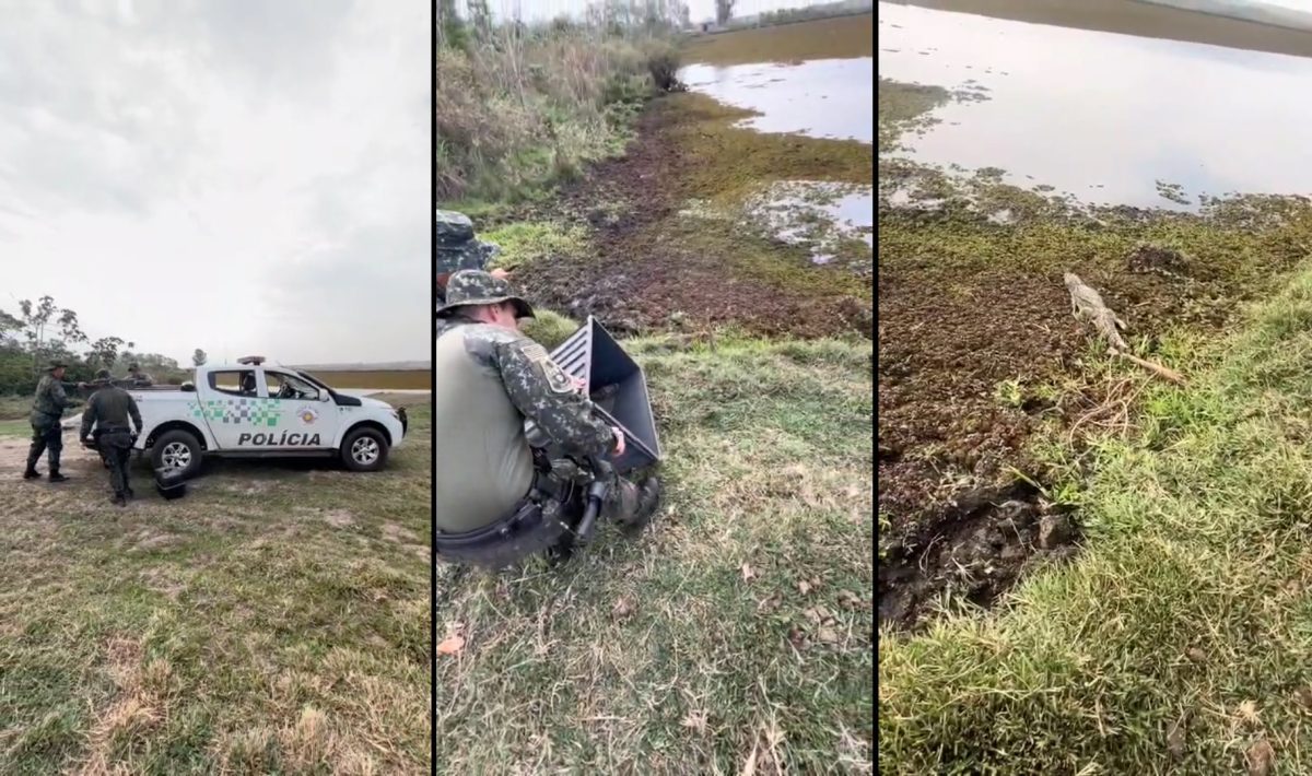 Recuperado, jacaré-de-papo-amarelo voltou a viver na natureza (Fotos e vídeo: PMAmb/Divulgação)