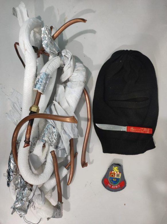 Ele tentou fugir, mas foi contido. O homem admitiu o furto, disse que pretendia trocar os fios e canos de cobre por entorpecentes em uma “biqueira” localizado ao lado da linha férrea, no Jardim Alvorada.