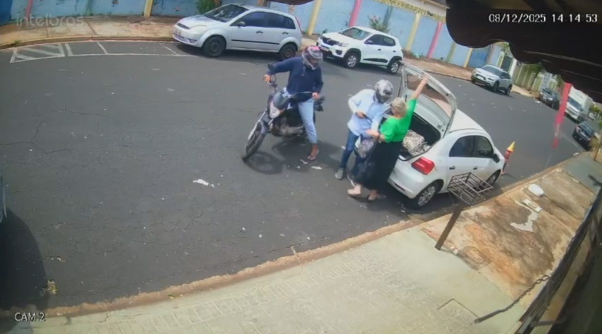A ação dos criminosos foi gravada por uma câmera de segurança. A professora estava com o carro estacionado em frente a uma escola e abriu o porta malas do veículo para guardar suas coisas.