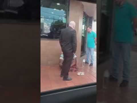Um vídeo que circula pelas redes sociais em Ribeirão Preto registra o momento em que um morador de rua é agredido por um segurança de uma churrascaria, na tarde desta quinta-feira (18).