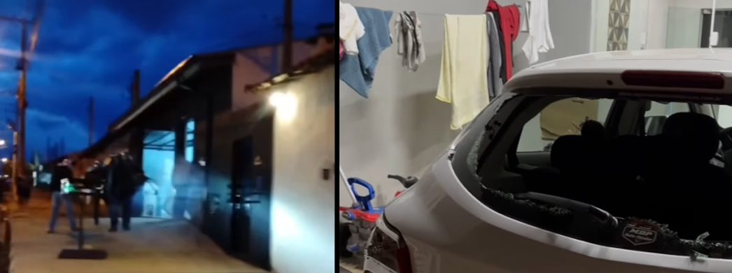Na noite desta terça-feira, 28 de outubro, diversas pessoas invadiram a casa do homem que aparece no vídeo incentivando o filho a agredir outro menino. Eles quebraram o portão da garagem, o vidro traseiro do carro da família, a porta lateral e uma máquina de lavar.
