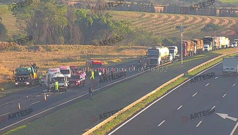 Com o impacto, o veículo ficou atravessado na faixa da direita. O caminhão parou pouco adiante. O motorista da van ficou preso nas ferragens. Equipes da Polícia Militar Rodoviária (PMRv), concessionária Arteris ViaPaulista e Corpo de Bombeiros foram até o local.