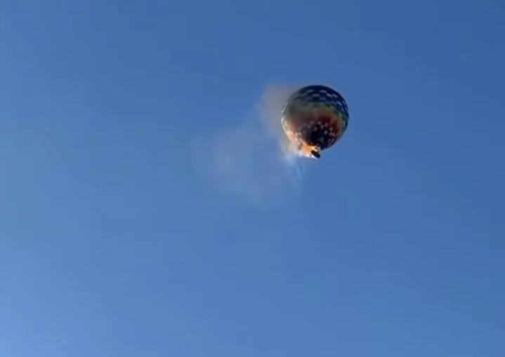 Vídeos compartilhados nas redes sociais mostram o balão em chamas durante o voo e, na sequência, a queda do cesto com os ocupantes.