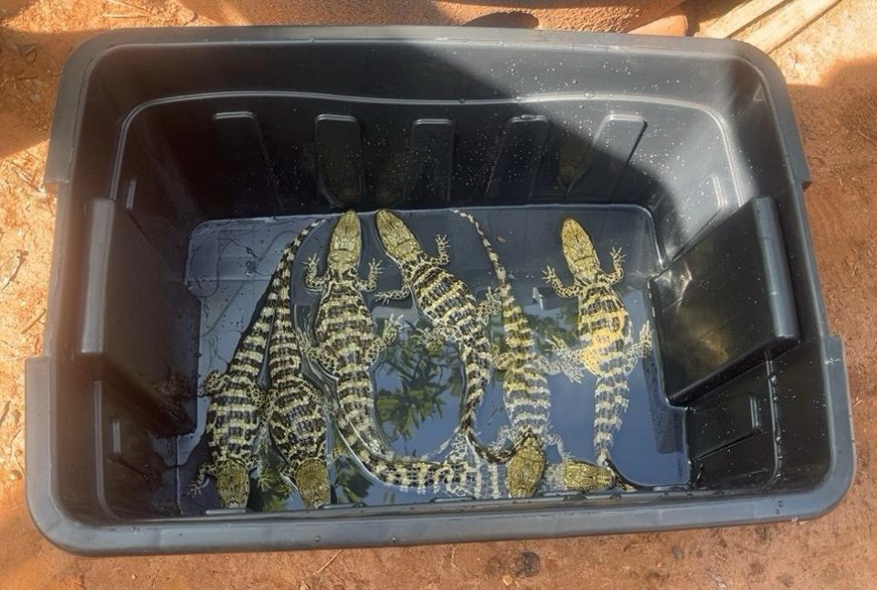 Os animais estavam acondicionados dentro de uma caixa d’água no quintal da casa. Cada filhote media cerca de 30 centímetros de comprimento. Segundo os policiais, os répteis pertencem à espécie Caiman latirostris, popularmente conhecida como jacaré-do-papo-amarelo, que integra a fauna silvestre brasileira.