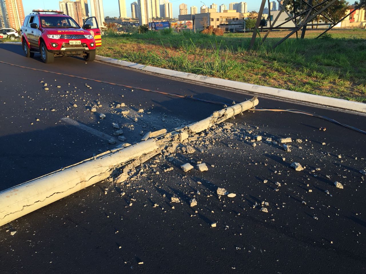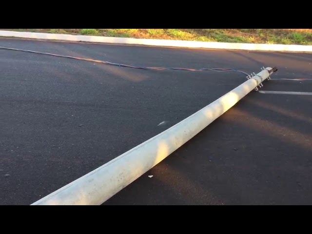 No momento que o carro colidiu no primeiro poste e caiu, a conexão dos cabos de energia acabou derrubando um segundo poste.
