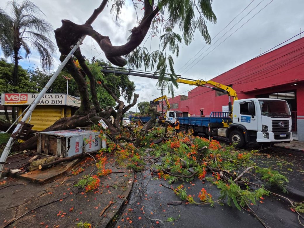 A forte ventania registrada em Ribeirão Preto, na manhã desta quarta-feira (10), ocasionou a queda de uma árvore e um poste e resultou na interdição de uma rua. A queda ocorreu na rua João Bim, próximo à esquina com a rua Hermínio Morandini, Jardim Paulistano, zona Leste da cidade.