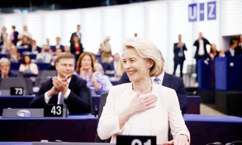 Von der Leyen ergueu os dois punhos em sinal de vitória enquanto a presidente do Parlamento, Roberta Metsola, lia o resultado no plenário. Ela considerou a sua reeleição uma vitória para os seus apoiadores, legisladores que ela chamou de “pró-europeus, pró-Ucrânia e pró-Estado de direito”.