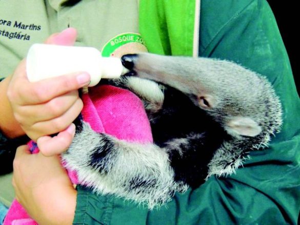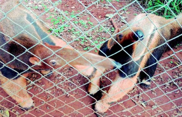 A bióloga Marisa dos Santos relembra a data da chegada de animaizinhos no berçário que hoje já são pais. “O ‘Bolota’ chegou aqui bem pequenininho, em 2013. Ele foi encontrado pela Polícia Militar, era órfão. Já a ‘Estopa’ veio pra cá com um ano, mas antes foi tratada no hospital da Universidade Federal de Uberlândia (UFU)”. O casal forma a família de tamandu­ás-mirins do zoo e em agosto comemora o primeiro aniver­sário de seu filho, “Izidoro”, o único animal do berçário que não é órfão.
